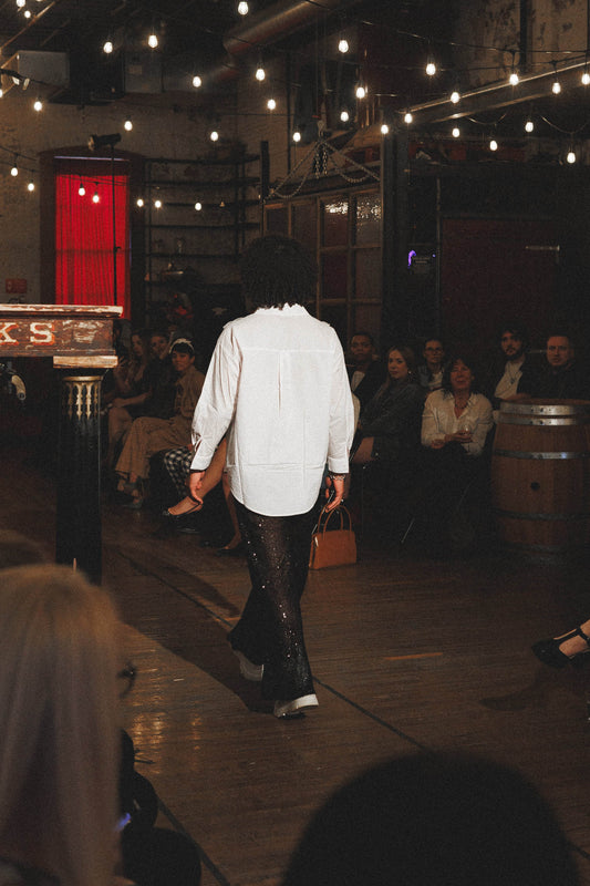 White Button Down Shirt with Handmade Beaded Flower Adornments