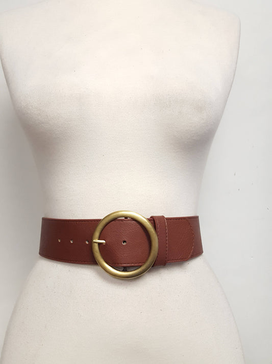 Wide High Waist Belt with Round Buckle