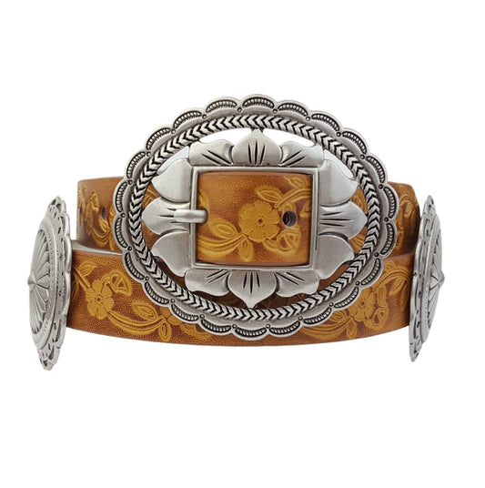 Concho Waist Belt with Floral Embossed Belt