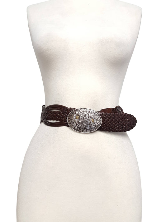 Hand Braided Leather Belt with Western Sunflower Buckle