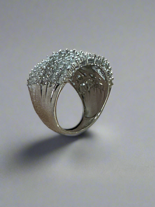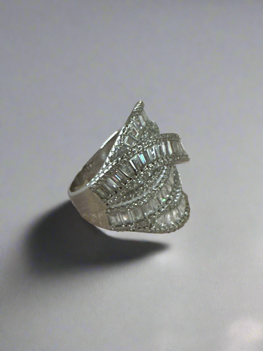 Stunning Baguette Crystal Worked Sterling Silver Ring Size 9