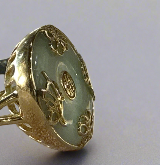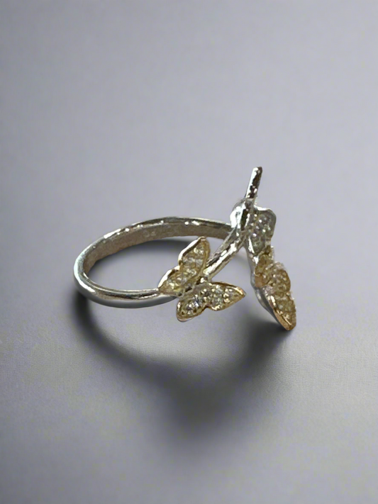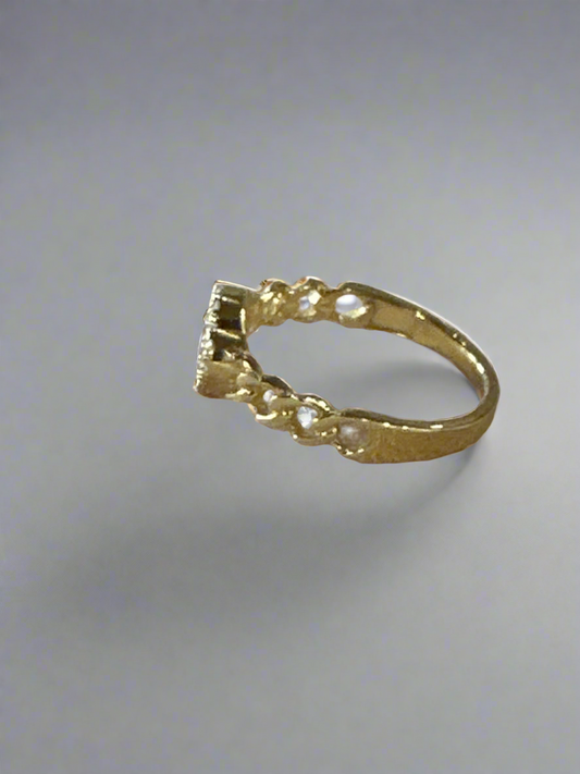 Woven Gold Plated Sterling Silver Ring with Mother of Pearl and Crystal Clover Size 6.5