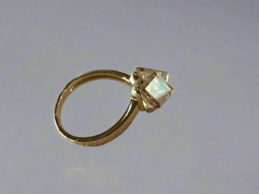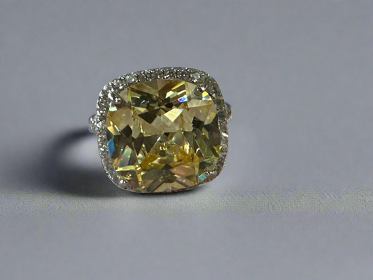 Cushion Cut Yellow Crystal Sterling Silver Ring Size 6