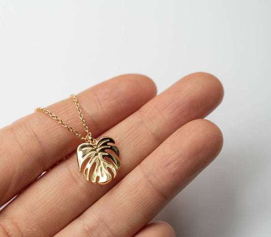 Monstera Deliciosa Necklace Gold & White Gold Gift Set