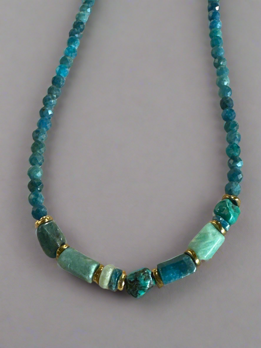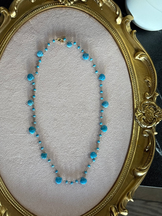 Blue Aquamarine Beaded Long Parisienne Necklace
