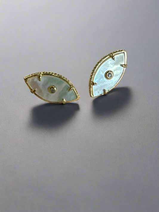 Parisienne Gold & Mother of Pearl Stud Eye Earrings