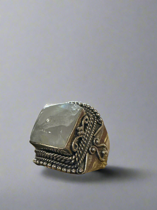 Rainbow Moonstone Sterling Silver Ring Size 8