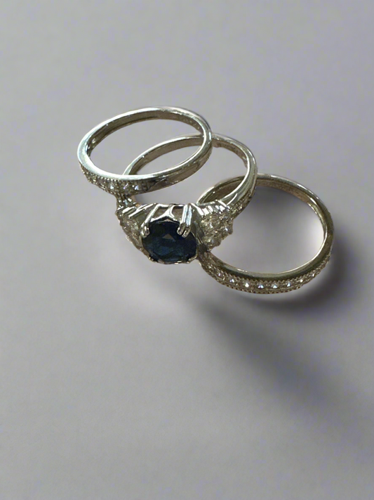 Stacking .925 Sterling Silver Costume Sapphire Rings Size 9