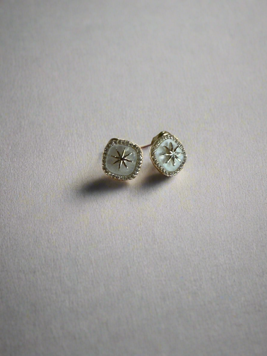Gold Starburst & Parisienne Mother of Pearl Stud Earrings