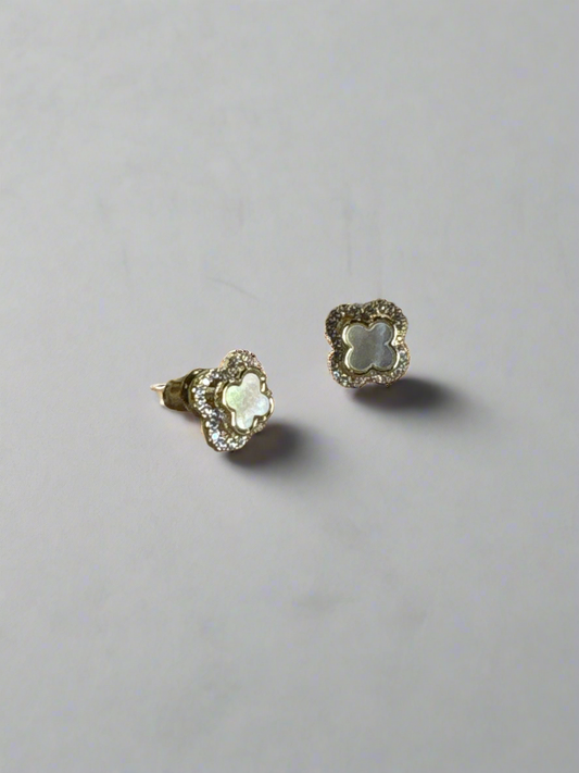 Parisienne Clover Gold Plated Crystal and Mother of Pearl Stud Earrings