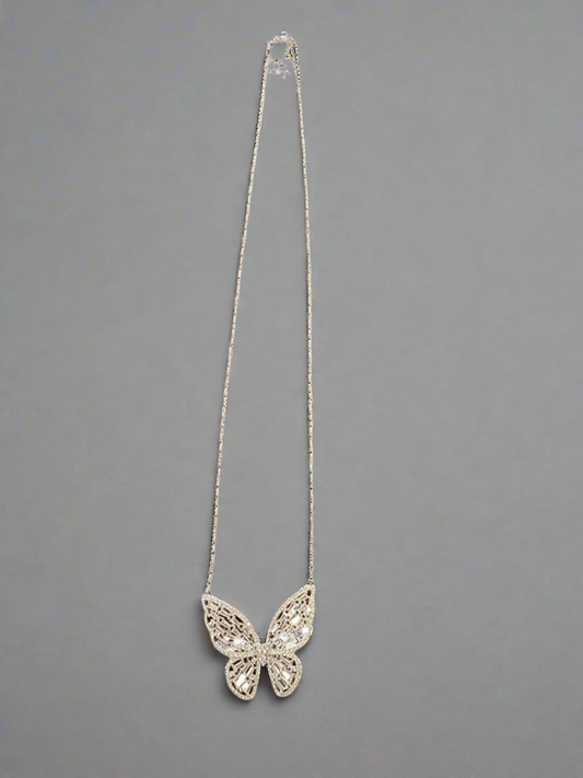Stunning Butterfly Pendant Necklace with Baguette Crystals