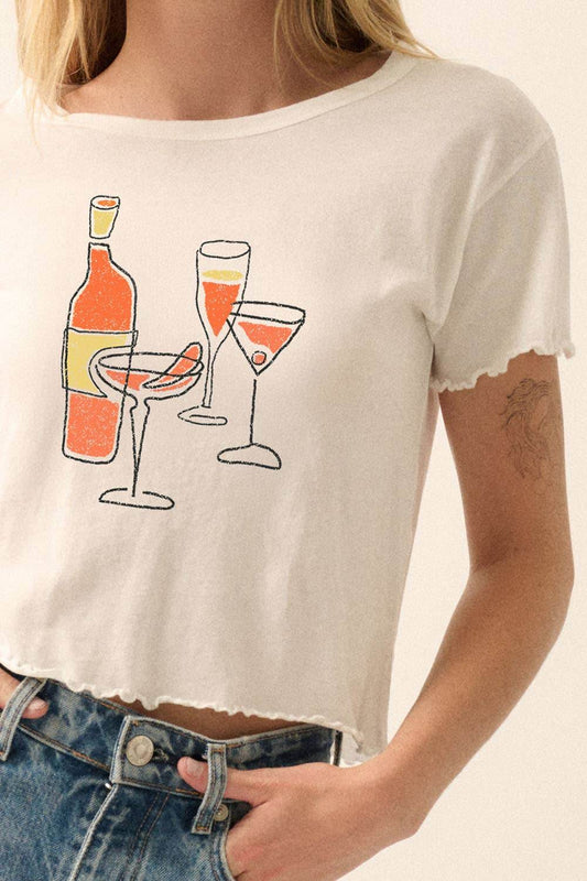 Hand-Drawn Cocktails Cropped Graphic Baby Tee