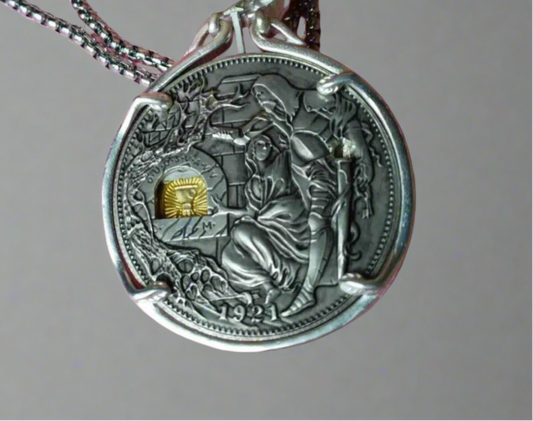 1921 Holy Grail Coin Necklace with Moveable Mechanism and Sword