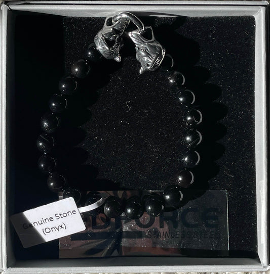 Genuine Stone and Stainless Steel Menswear Wolf Bracelet