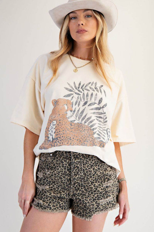 Ornate Swan Vintage-Wash Oversize Graphic Tee