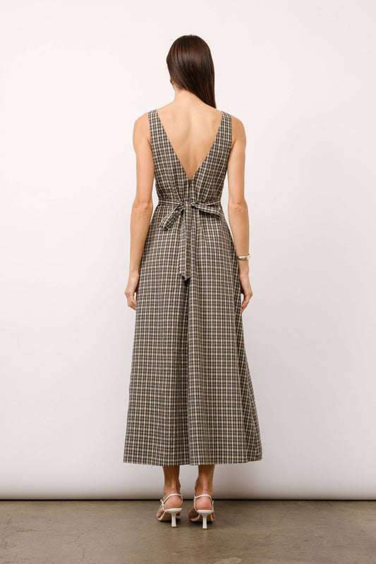 Plaid Maxi Dress with Godet Skirt