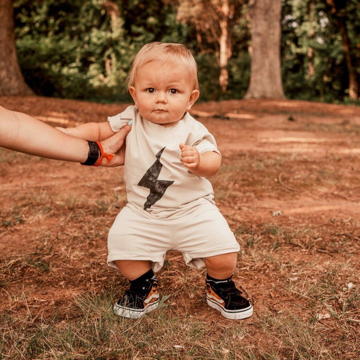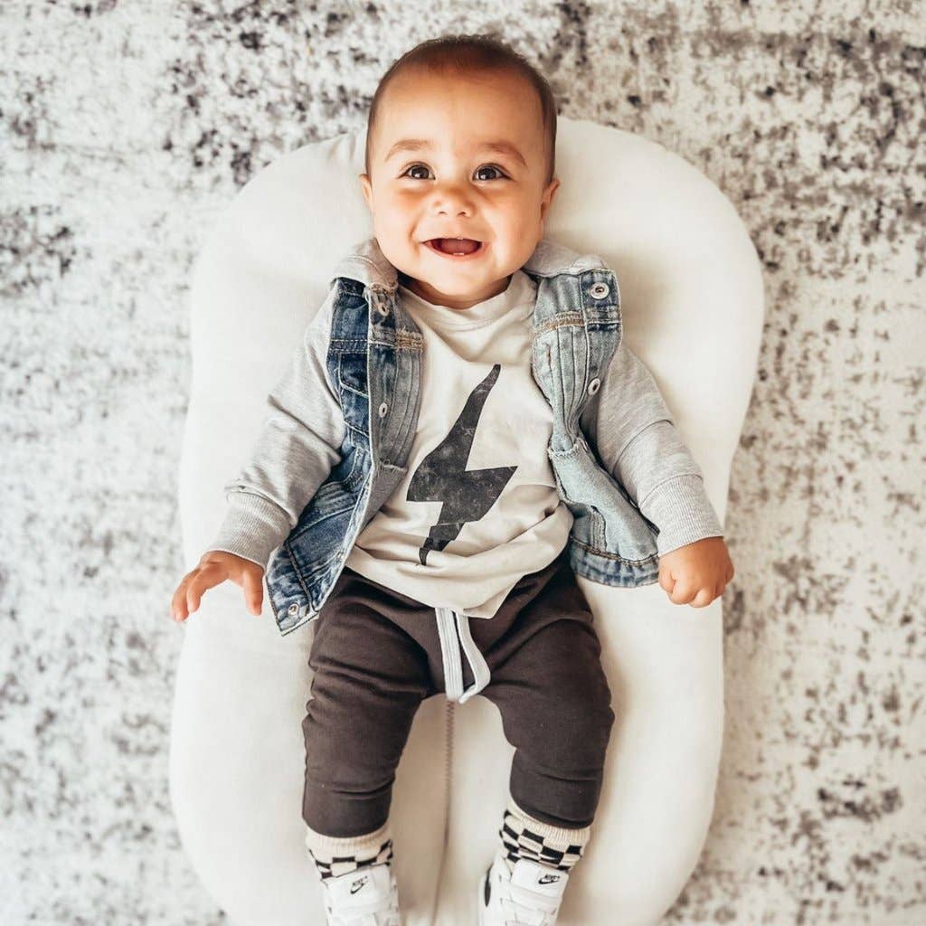 ⚡️Super-stretchy for long-lasting wear as your little one grows from size to size Our signature SPARK is a Fan Favorite! This dreamy tee is the perfect greige for the neutral lovers out there. Made by our women-owned small business partner who specializes in eco-friendly retro aesthetic and not available in big box stores or Amazon.
