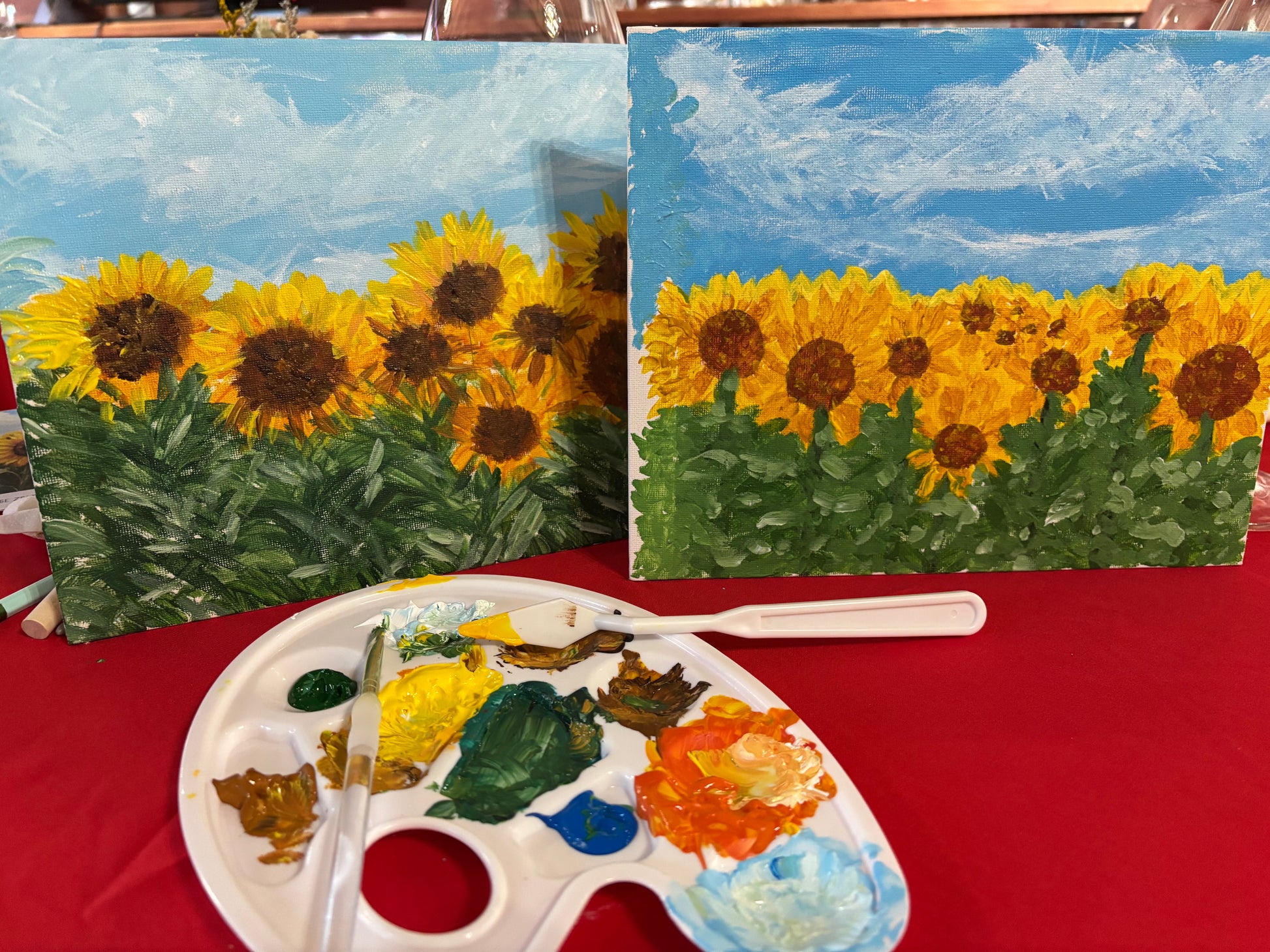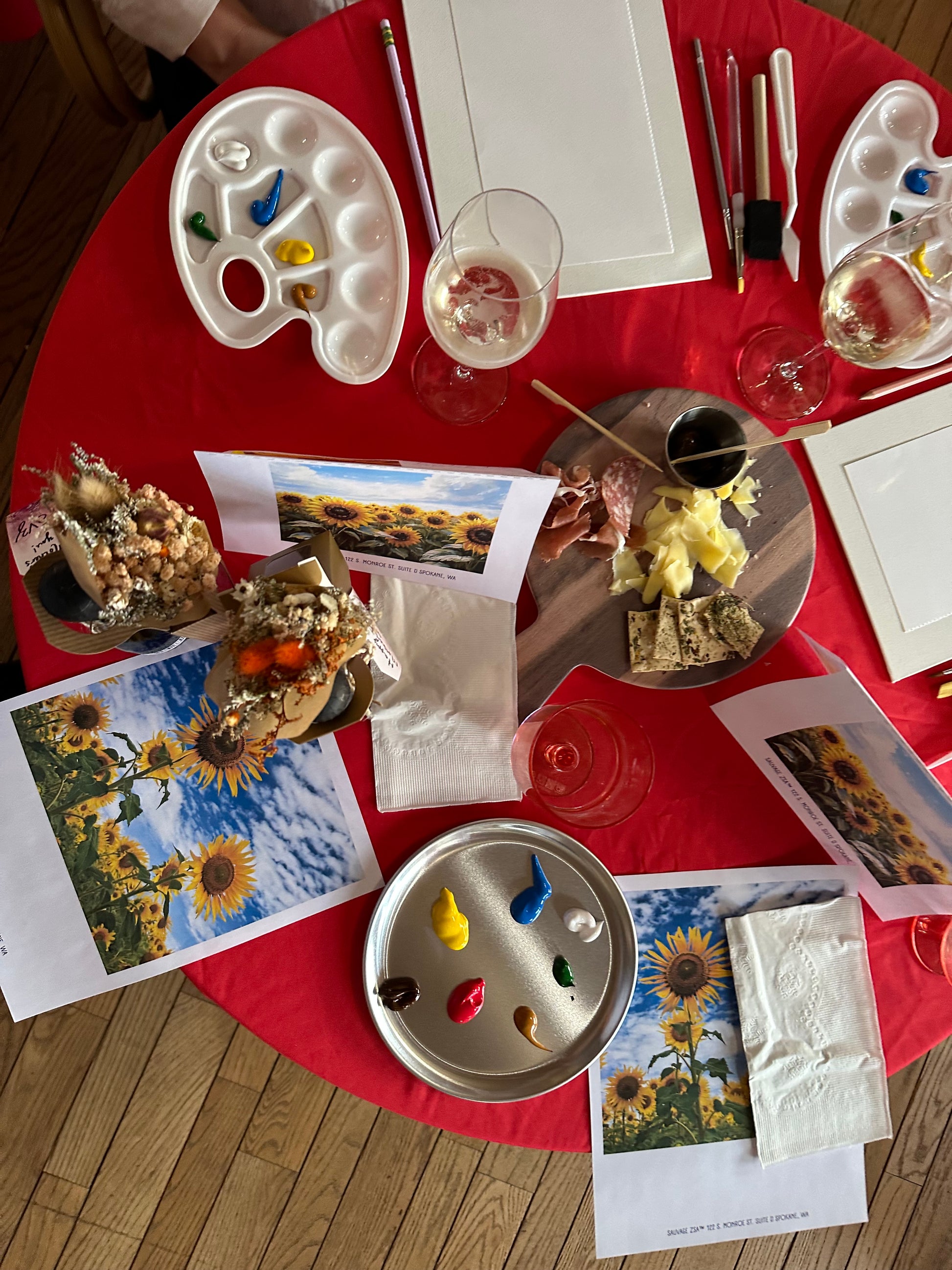 A sweet evening painting with my son while sipping wine and yummy charcuterie. Zsa Zsa guided us to create fun sunflower fields. Special, special treat for Mothers Day.