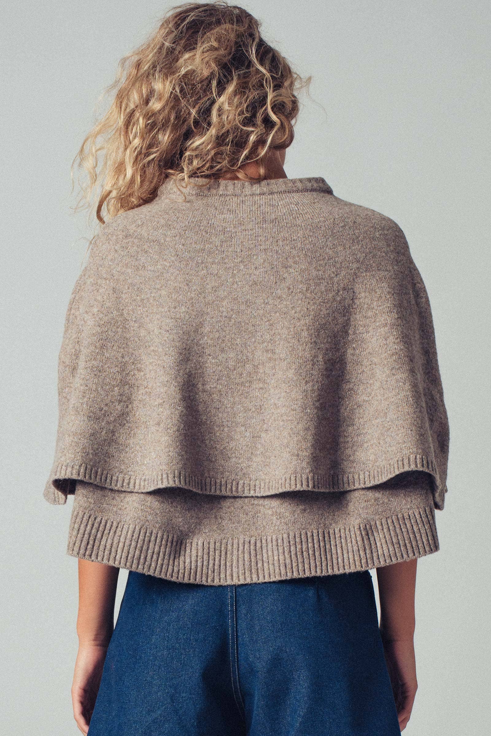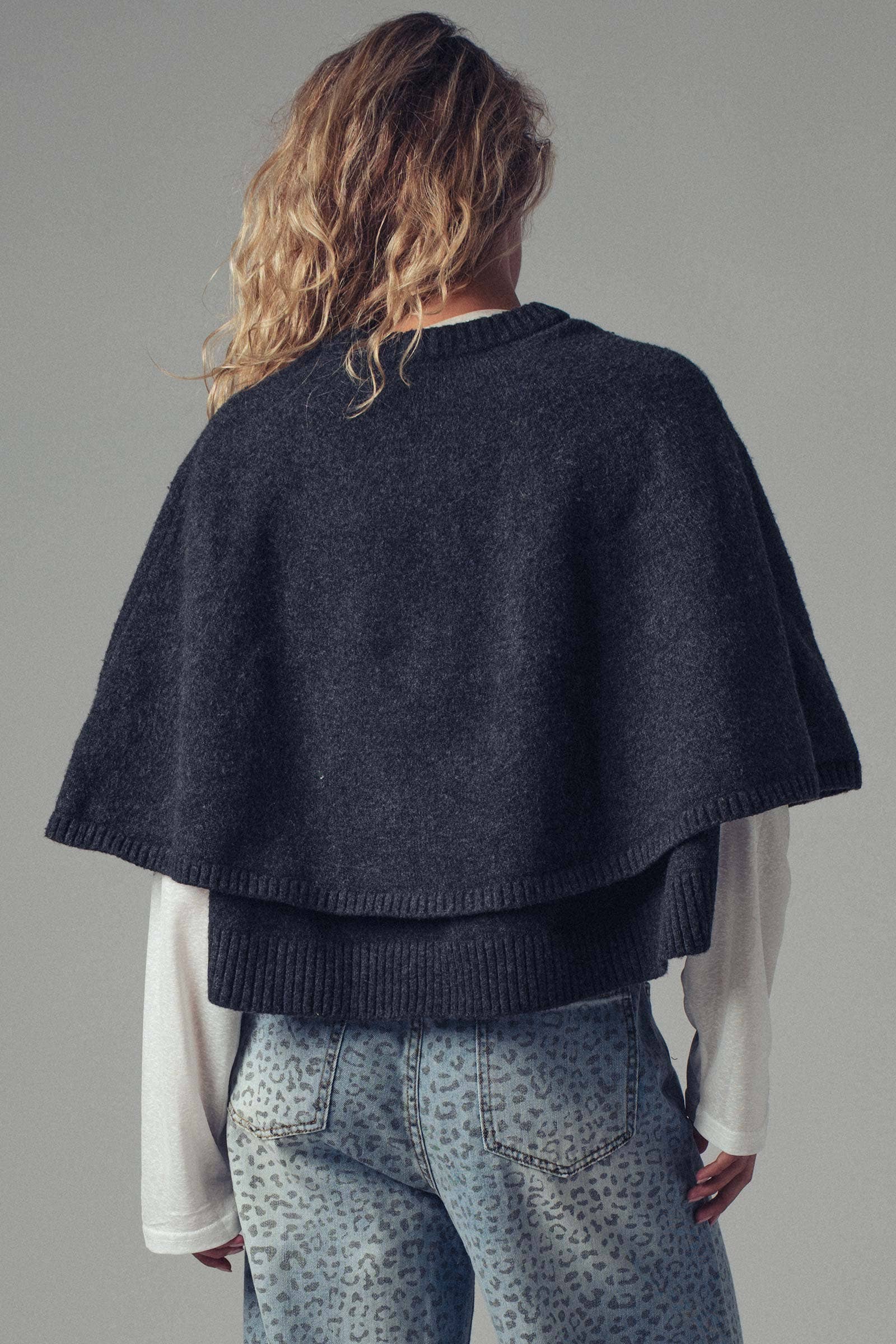 Wool Blend Button-Front Sweater Cape
